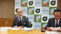 家庭ごみ有料化を進めている東久留米市で、指定収集袋の製造・管理・運搬で2年間の業務委託契約を結ぼうとしたが、年度をまたいで支出する場合に必要となる債務負担行為を設定していなかった-。[2017年]3月30日の記者会見で、家庭ごみ有料化の3ヵ月延期、10月実施の原因となる事務的ミスが明らかになった。(写真は、家庭ごみ有料化の取り組みを説明する並木克巳市長=左)(東久留米市役所)