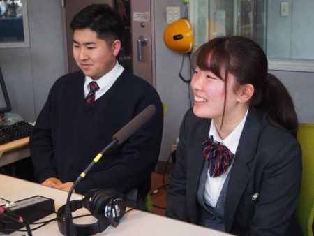 2016年度高校生ものづくりコンテスト全国大会(測量部門)で準優勝した東京都立田無工業高等学校チーム(西東京市向台町1丁目)のひとり、都市工学科3年生の菊池恭輔君(18)と、東京都建設系高校生作品コンペティション2016で最優秀賞を受賞した、同校建築科3年生の難波玲夢さん(18)が[2017年]3月18日(土)、西東京市芝久保町のFM西東京生放送番組「ウィークエンドボイス」に出演した。(写真は、番組に出演する菊池恭輔君=左、難波玲夢さん=右)