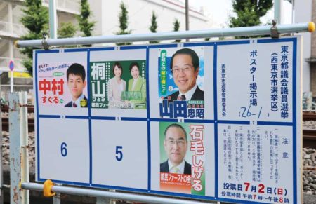 東京都議会選挙が[2017年]6月23日告示された。西東京市選挙区(定数2)では同日、現職2人、新人2人の計4人が立候補を届け出た。立候補者は以下の通り(届け出順)。