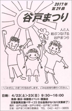 第29回谷戸まつりが[2017年]4月22日と23日、西東京市の谷戸公民館や近くの小学校を会場に開かれた。公民館の利用団体のほか、近隣の小中学校、商店などが地域ぐるみで作り上げる毎年恒例の春のイベント。館内の催しや出店に大勢の市民が集まった。(写真は、大賑わいの谷戸まつり)