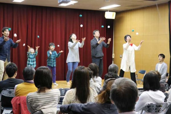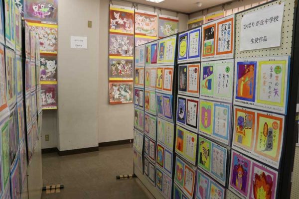 公民館2階は谷戸小、谷戸第二小、田無二中、ひばり中の子どもたちによる絵や書の作品が展示された。視聴覚室では、ラッキードラゴン一座の音楽と語りとミニ・ショーのステージが開かれた。