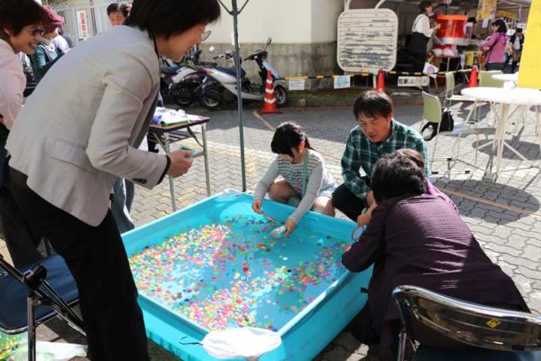 一階ロビーに、NPO法人まちかど保健室が机を出していた。赤ちゃん講座などを続けて10年余り。養護教諭、保健師、保育士らが多く、「体調を崩す人が出たら世話をしてほしいと声を掛けていただき、毎回参加しています」と副会長の喜田貞さん。子育て相談と赤ちゃんのおもちゃづくり教室を開いていた。