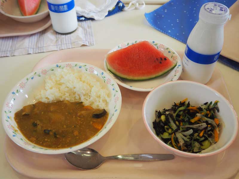 小平市は[2017年]6月22日、地元産夏野菜カレーの給食を市内全公立小中学校などで提供した。「小平夏野菜カレーの日」と銘打って2012年から実施。今年は小平市役所の食堂でも学校のレシピを参考にして夏野菜カレーを販売した。(写真は、夏野菜カレー美味しい!)