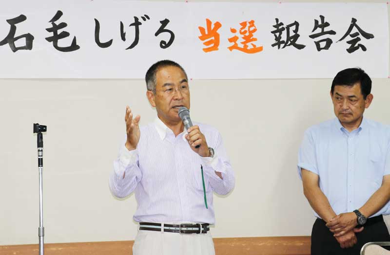 東京都議会議員選挙の西東京市選挙区で当選した無所属の石毛しげる氏は[2017年]7月3日、これまで「推薦」としていた都民ファーストの会が追加公認すると発表したことを受けて「正式な連絡はないけれども、先方(都民ファースト)が発表して、すでにテレビや新聞に出ている」と述べて否定せず、「公認」受諾の意向を示唆した。この日夜、市民会館で開いた「当選報告会」の席で、100人を超える支持者の前で話した。