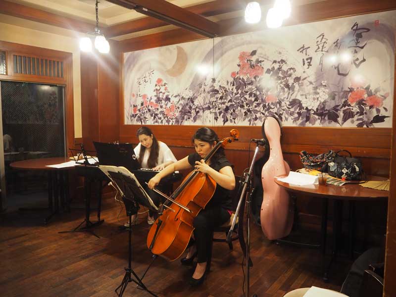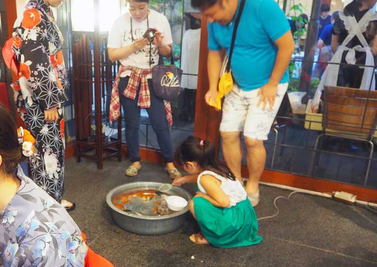大通りから一筋入った通りでは同日、中国料理店「墨花居」で夏祭りが開かれた。