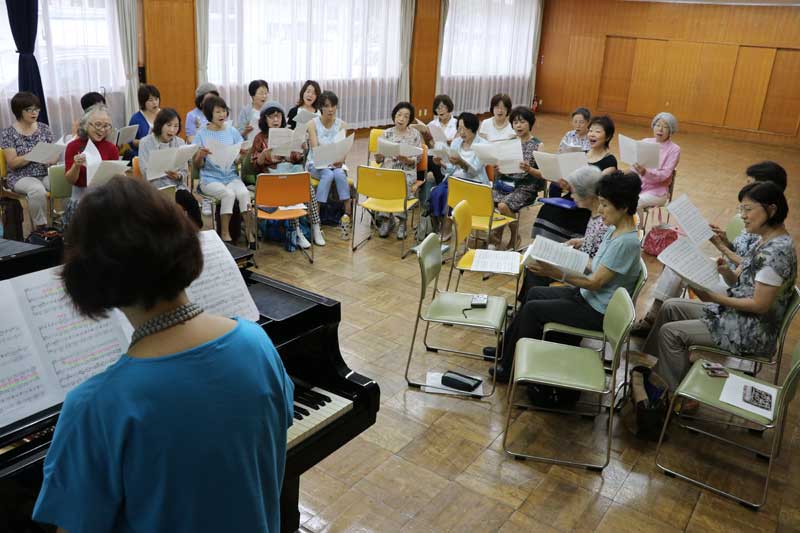女声コーラスの「ビバーチェ」(上間みき子代表)は約30人。40代から80代まで幅広い年代が参加している。西東京市内だけでなく、東久留米市や埼玉県新座市にもメンバーがいる。毎週は無理だが、月1回群馬県高崎市から来る人も。上間さんは「楽譜が読めなくても自分のパート(録音)を聴いて覚えられます。初めてでも敷居は高くないですよ」と話している。