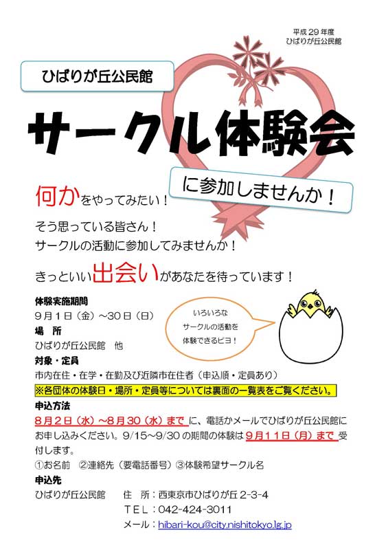 ・ひばりが丘公民館 サークル体験会(西東京市Web)