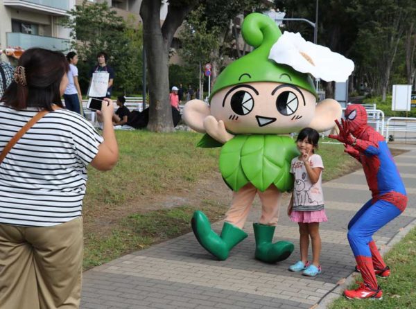 西東京市立中原小学校の「おやじの会」が今年[2017年]10周年を迎え、地域の人たちや近隣団体と一緒に10月1日、「みんなのひばり祭」を開いた。会場はひばりが丘団地内のコミュニティーハウス「ひばりテラス118」と、隣接の公園。父親の職業を知ってもらう体験イベントが開かれ、手づくりの出店が並ぶ。好天に恵まれたお祭は、近所の人たちで賑わった。(写真は、ご近所さんもやって来た)