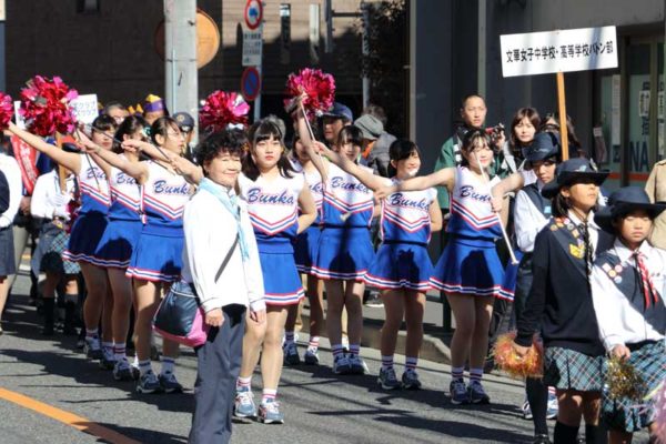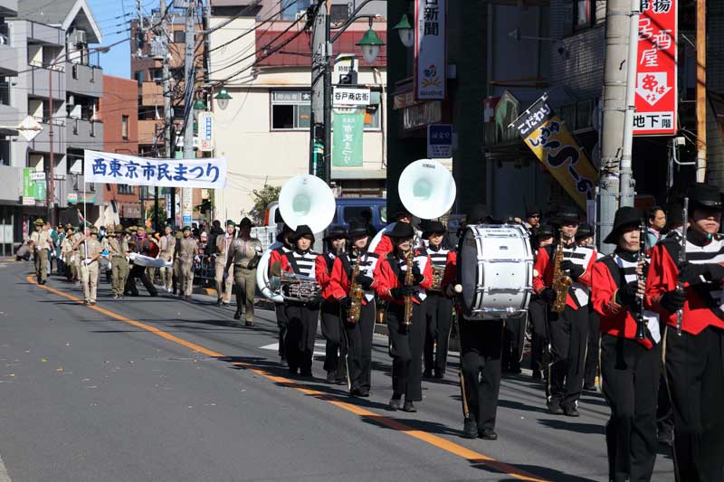 恒例のパレードは12日午前10時半過ぎ、西武池袋線ひばりヶ丘駅南口広場を出発した。楽器を演奏しながら進む小中学生に、沿道から声援が飛ぶ。歩道は人込みをかき分けて進むほどだった。「写真撮るからこっち向いて!」。パレードに参加したわが子に、大きな声で叫ぶ保護者らもいた。