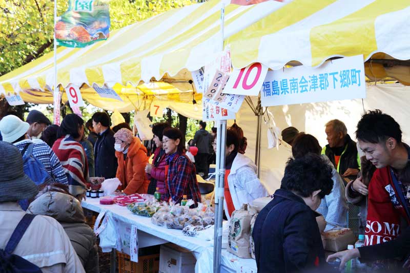 ボランティア団体やNPO法人のほか、福島県下郷町、山梨県北杜市、千葉県勝浦市の姉妹・友好都市が店を構えて特産品を販売した。各県の県人会や大学OBらの出店も入会案内を配っていた。