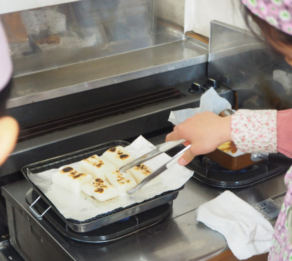 自分たちで作ったおせち料理を調理室隣の和室で味わった。「お雑煮の汁がおいしい。お餅に焦げ目がついていてとってもおいしい」と子どもたち。味見をした保護者も「お出しの味が深くて驚きました。香が違いますね。今年は教わった通りに作ってみよう」と話していた。