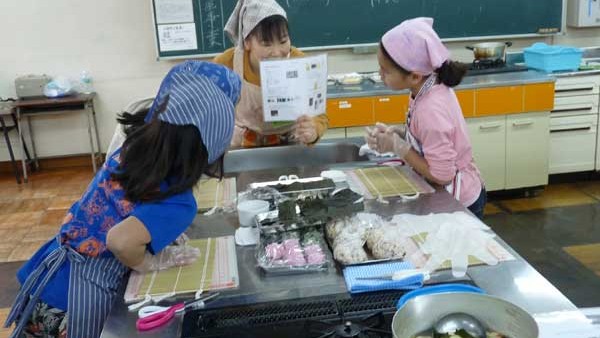 子どもたちは体験を通して食材を知り、鍋や包丁の扱いを覚え、後片付けも忘れない。寿司作りの前段が手際よく進行した。