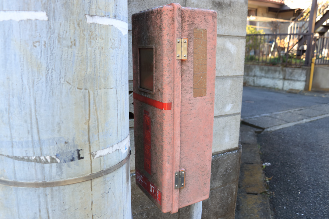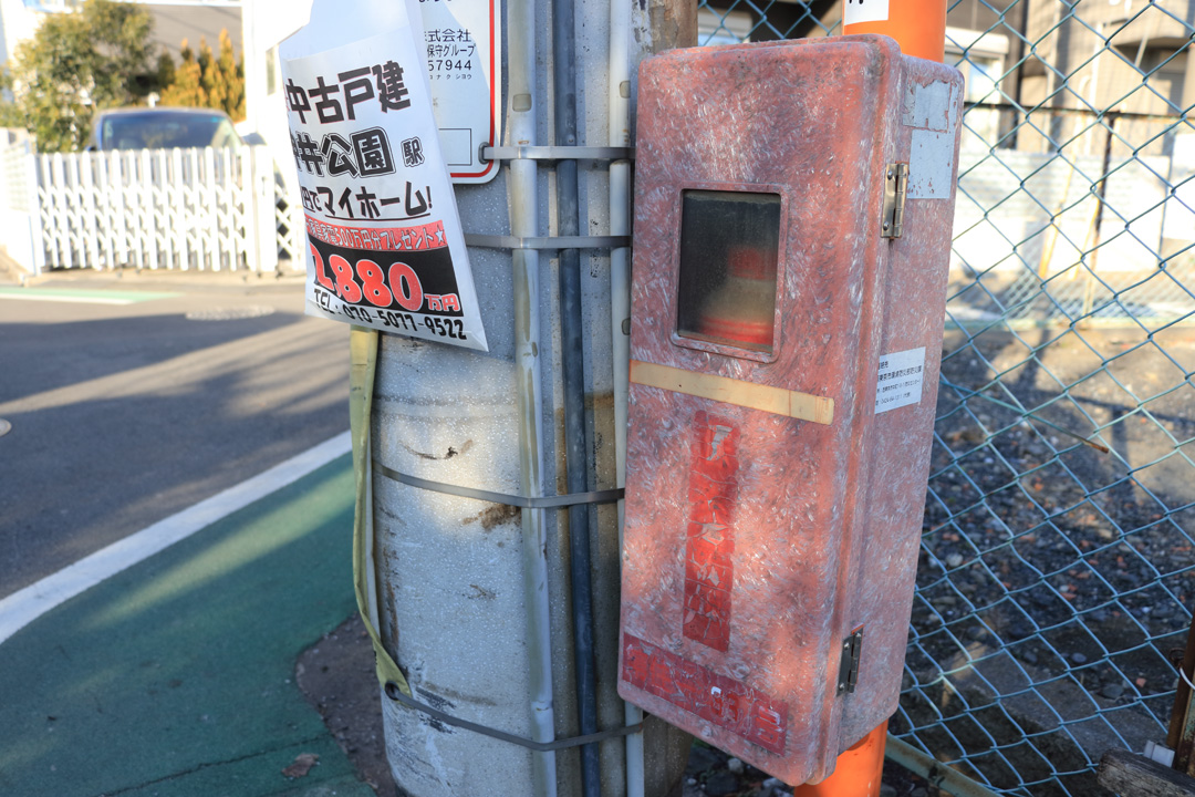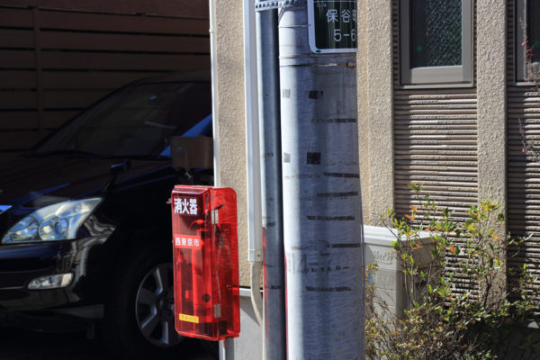 消火器の文字が見えないのは困るけれど、本体が機能しなければ一大事。外観よりまず中身が問題だ。「ケース破損、本体傾斜」と指摘された保谷町5丁目の消火器は、真新しいアクリル製ケースに生まれ変わっていた。
