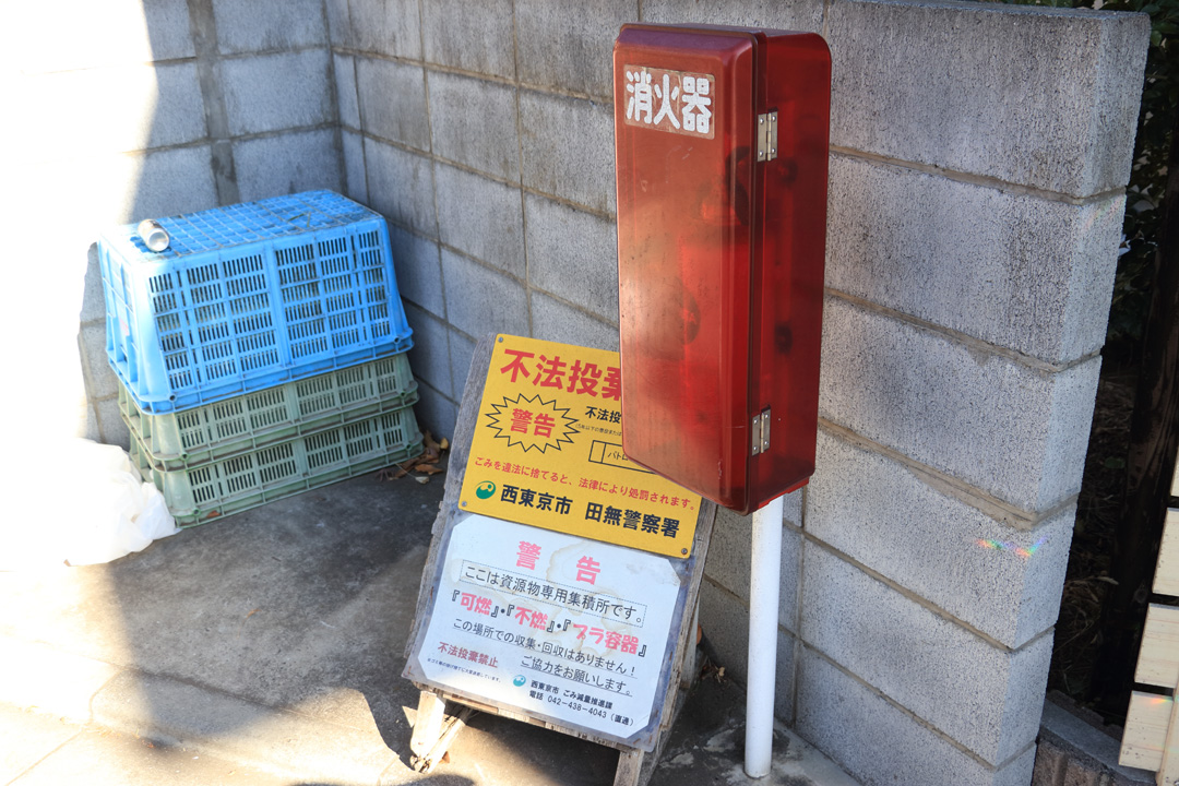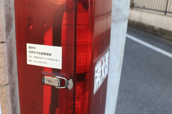 東京消防庁西東京消防署によると、[2017年]12月28日から[2018年]1月3日まで市内の火災は1件。12月28日の芝久保町5丁目の小火だけで、負傷者なしだった。このとき消火器が使われたかどうかは掴んでいないけれど、必要なのに消火器が使えなかったとしらた大事になりかねない。危機管理室も市のホームページで「消火器箱から不必要に消火器を持出し、噴射したり、周辺に投げ捨てる事案が連続して発生しております」と注意喚起。「気付いたら危機管理室に連絡してほしい」と呼び掛けている。