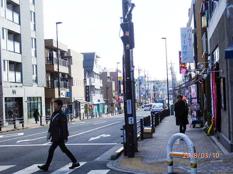 駅前から南に、かえで通りがある。同行した防災専門家によると、通りを下った付近は白子川の流路で、地下水の通り道がある。このため大雨になると水が集まり、一帯は浸水する場合があると説明があった。この通りは地震対策で電柱が埋設されて見通しがよい。
