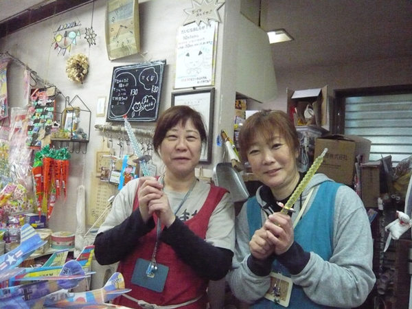 店内では柳沢楽太郎一座の「駄菓子屋ブギ」が流れている。親子で訪れた一家に話を聞くことができた。360円の「大人買い」をしていたお父さんは「昔と変わらないお菓子が懐かしく、ついつい沢山買ってしまった」と照れていた。「この店は以前から知っていたが、訪れるきっかけがなく気になっていた。今日はイベントで子供と一緒に来やすかった」と話した。小学生の息子は初めての駄菓子屋、ということでお母さんはお金の払い方などを教えていた。