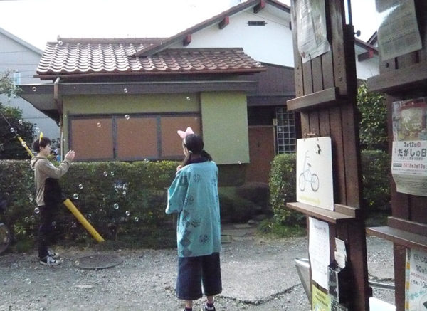 将来保育士を目指しているという高校生による紙芝居、時間になるまで待ちきれずフライングで始まったソフトグライダー選手権、小さな楽器を口を使って鳴らす「口琴」部隊の即興演奏があり、夜は打ち上げ、卒業祝いも兼ねた集まりが開かれた。