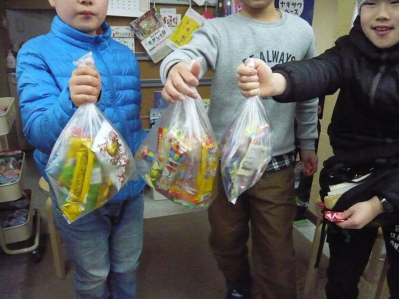 グライダーを購入した子には「駄菓子のつかみ取り」のサービス。この日のイベントのために「DAGASHIで世界を笑顔にする会」から大量の駄菓子が提供された。子供たちはもちろん満面の笑み。