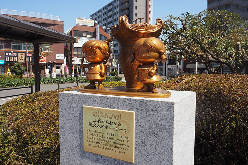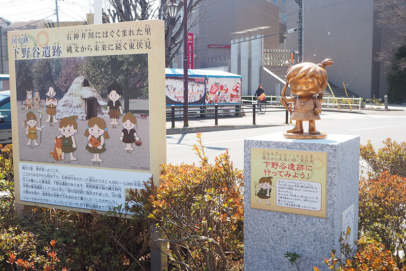東伏見駅前に縄文モニュメント 「しーた」と「のーや」ら案内