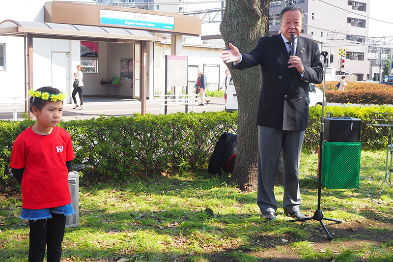 除幕式には、地元商店街や市民など約40人が参加した。冒頭、丸山浩一西東京市長は「下野谷遺跡をどう保存し、次世代につなげ、市の財産として地域活性につなげていくか考えています。点ではなく面にしていきたい」。続いて、木村俊二同市教育委員会教育長が、「担当として、下野谷遺跡の文化的な価値を全国へ発信したい。遺跡が市民、特に子どもたちの財産になるよう責任をもって進めていきたい」とそれぞれ挨拶した。