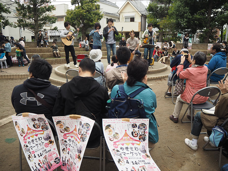 みんな集まってまちを盛り上げよう-そんな願いを込めて「やぎさわマーケット」が4月14日、西武柳沢駅から徒歩約5分の柳沢せせらぎ公園で開かれた。フリーマーケットや手作り品の販売、飲食ブースも充実。「商店街スタンプラリー」もあり、イベントを盛り上げた。くもりで風の強い日だったが、親子連れなど約1700人がイベントを楽しんだ。