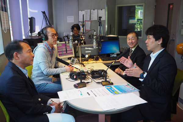 第4回西東京商工まつりを主催する、同商工会関係者の皆川卓哉さん、下川隆さん、高野哲也さんが4月21日、西東京市芝久保町のFM西東京生放送番組「ウィークエンドボイス」に出演した。