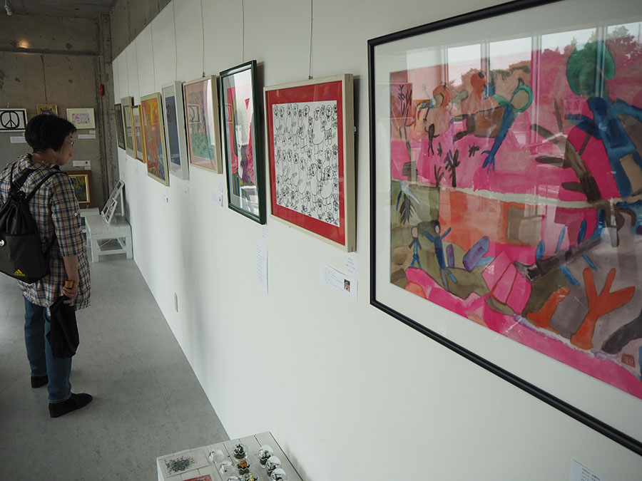 作品についても「一般の展示会は公募が多いが、わたしたちは埋もれている人も掘り起こしたい。いい作品があると聞くと自分たちで探し歩いた。展示作品は障がいがあろうがなかろうが、いいものはいい。感性で選ぶ」「今回は商店街 が後援してくれた。わたしは美術教師なので、まちにアートを広げたい。ワークショップだとか実験工房などをやりたい」と話した。