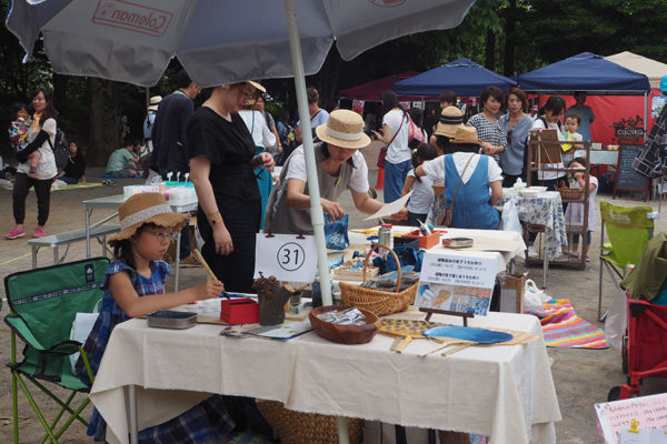 地元の子育て世代の母親の手作り雑貨などを販売する「min’na de part~ happy hanaco party(みんなデパート=みんデパ)」が5月19日、小平市花小金井6丁目の東部公園で開かれた。今回で2回目。飲食店舗やステージも充実し、昨年を超える5000人余りの親子連れなどで賑わった。