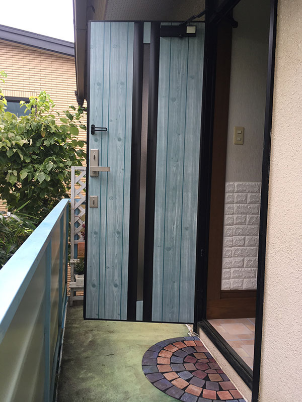 ブルー色に塗られた手すりがある階段を上るときれいなブルー色の扉。水の中に吸い込まれるような色だ。中に何があるのか、ワクワクする。