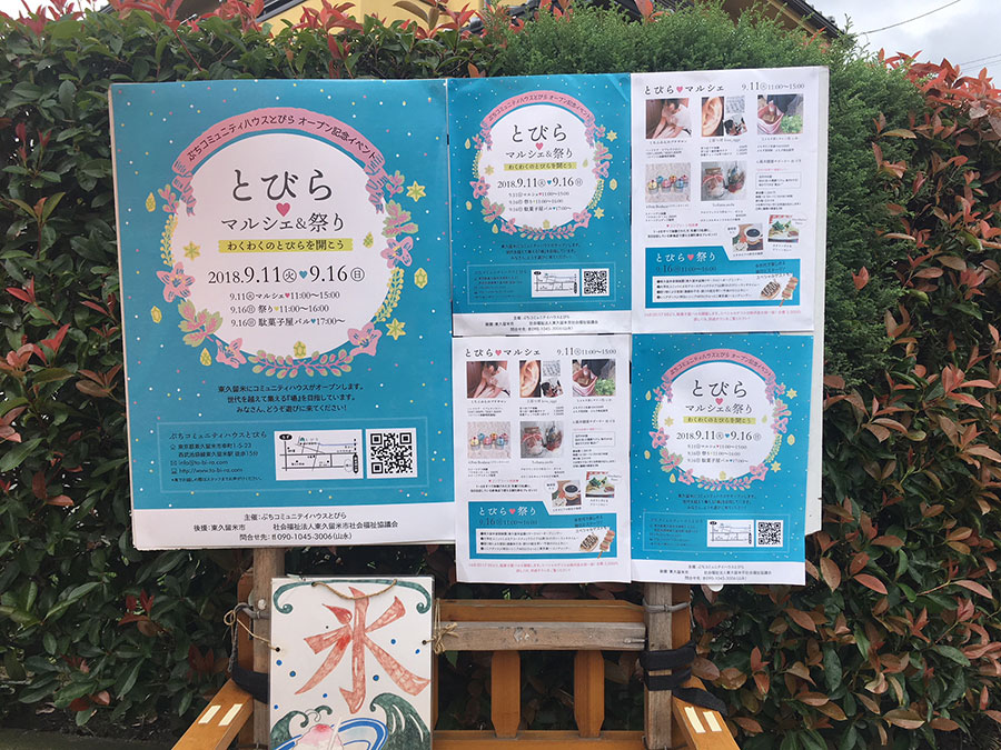 「ぷちコミュニティハウスとびら」(東久留米市幸町)のオープンを記念して、9月11日午前11時から「とびらマルシェ」が開かれた。住宅街にある3階建ての一軒家。1階には「だがしやかなん」がある。新たにオープンしたのは建物の2階部分だ。