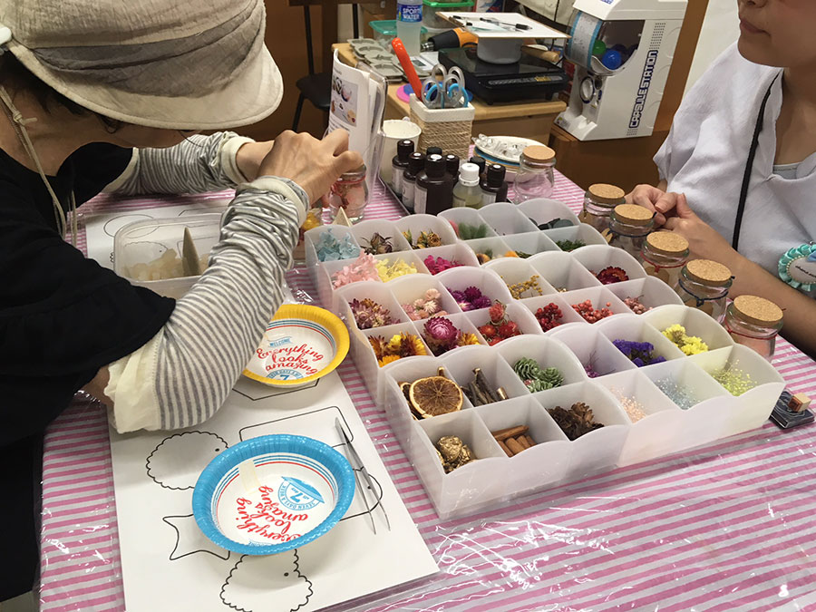 1階の駄菓子屋店内では、可愛い雑貨を作るワークショップが2店。駄菓子屋の営業日でない日はレンタルスペースとなる。気軽な気持ちでワークショップ開催などに一歩踏み出せそうなスペースだ。