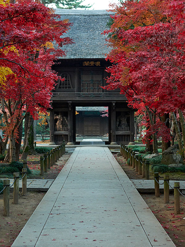 紅葉の見ごろは12月上旬。開門時間は午前9時から午後4時30分。最終入場は午後4時。料金は大人(中学生以上)500円、団体(30人以上)400円、子ども(小学生)200円、団体100円、子ども(1歳以上)の団体100円。12月は修行道場行事のため団体の入山はできない。