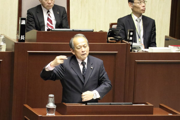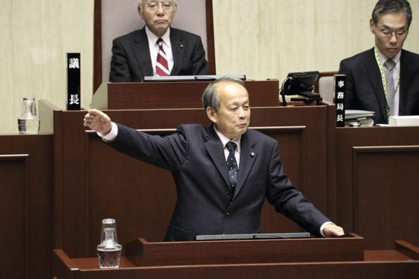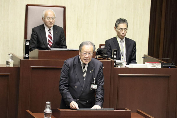 続いて、丸山浩一市長が発言を求めた。「議員のみなさんの任期最後の定例会の閉会にあたり、私も一言ご挨拶したい」と口火を切り、4年間の議員の活動に敬意を表した。その上で、勇退する2人に感謝し、「特に浅野氏は36年の議員生活を通じて、市政発展に尽くされた」とねぎらいの言葉を贈った。