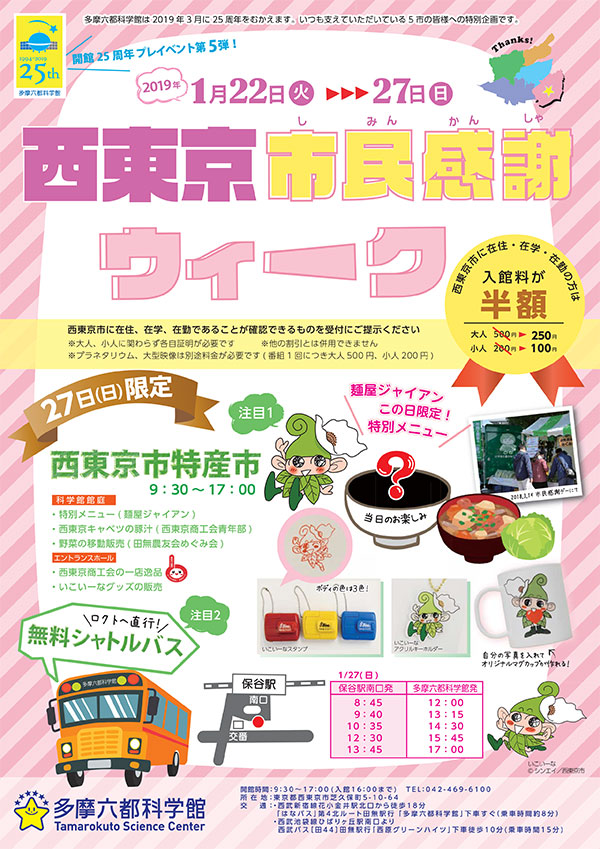 ・西東京市民感謝ウイーク<開館25周年プレイベント>(多摩六都科学館)