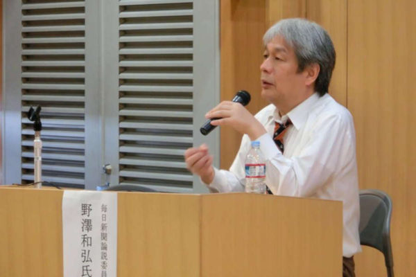 1983年毎日新聞社に入社し、社会部で、いじめ、引きこもり、薬害エイズ、児童虐待、障害者虐待などに取り組んできた野澤さんは、ジャーナリストとして現場に長く関わってきた経験をもとに1時間余り講演。その後の45分は、60名を超す参加者からの感想や質問に野澤さんが答える時間が設けられ、双方向のやり取りが活発に行われた。