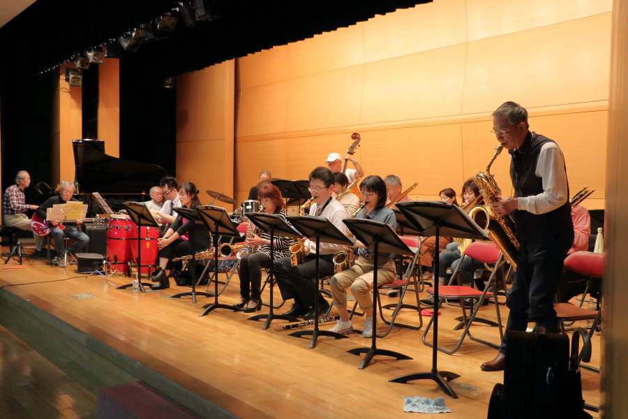 代表の高松英二さんは今年81歳。建築事務所を主宰しながら、バンドのまとめ役を20年間務めてきた。楽器はバリトンサックス。「テナー、アルトと来て、いまはバリトン。担当する人がいなくなるとぼくがやるんです」。学生時代は音楽に熱中した。しかし就職して30年ほど楽器を手にしなかった。「たまたまオーディションを受けたら、いきなり譜面を出されたけど、なんとか合格しました。結成当時、ジャズだけでなくラテンミュージックも演奏するバンドは珍しかった。いろいろありましたけど、いまは仕事よりこちらがメーンかな」とニッコリ。