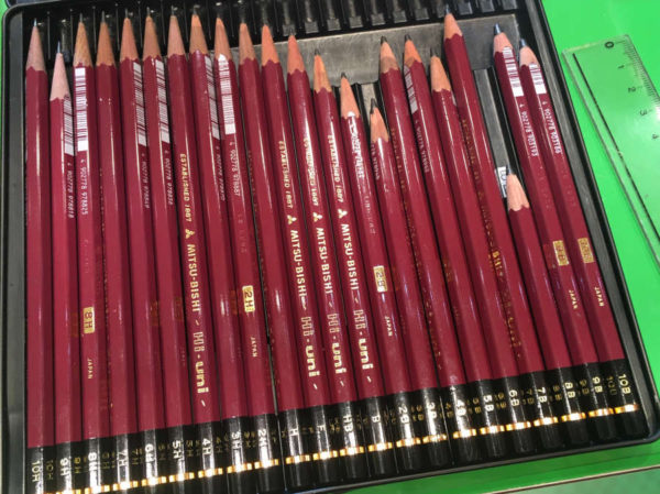 「10Hから10Bまでの硬さの異なる鉛筆で線をかく」「油性インク、ゲルインク、水性インクのボールペンのかき比べ」「ペン先の素材によって万年筆のかきごごちは変わるか?」などのコーナーは人気があり、席が空くのを待っている子どもが大勢いた。