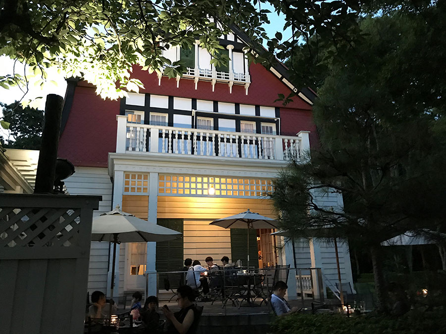 浴衣姿で園内を散策するカップル、手を繫ぐ親子、友人らと連れ立ってそぞろ歩きする姿も目に付いた。ビアガーデンでくつろぎ、明治時代の瀟洒な洋館「デ・ラランデ邸」で食事やお茶に集う人びとも、真夏の夕べを思い思いに楽しんでいた。