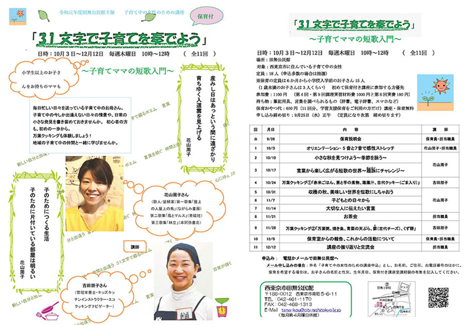 ・子育て中の女性のための講座(保育付)「31文字で子育てを奏でよう 短歌入門」(西東京市Web)