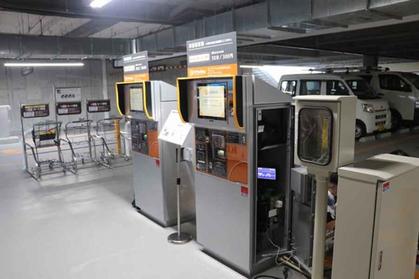 地下の駐車場は110台収容。ゲートバーはなく、ナンバープレートを自動的に読み取って料金精算するシステムを取り入れた。