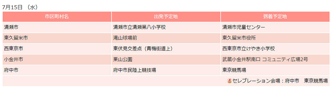 ・聖火リレー 東京都日程別通過市区町村(東京2020オリンピック・パラリンピック競技大会組織委員会)