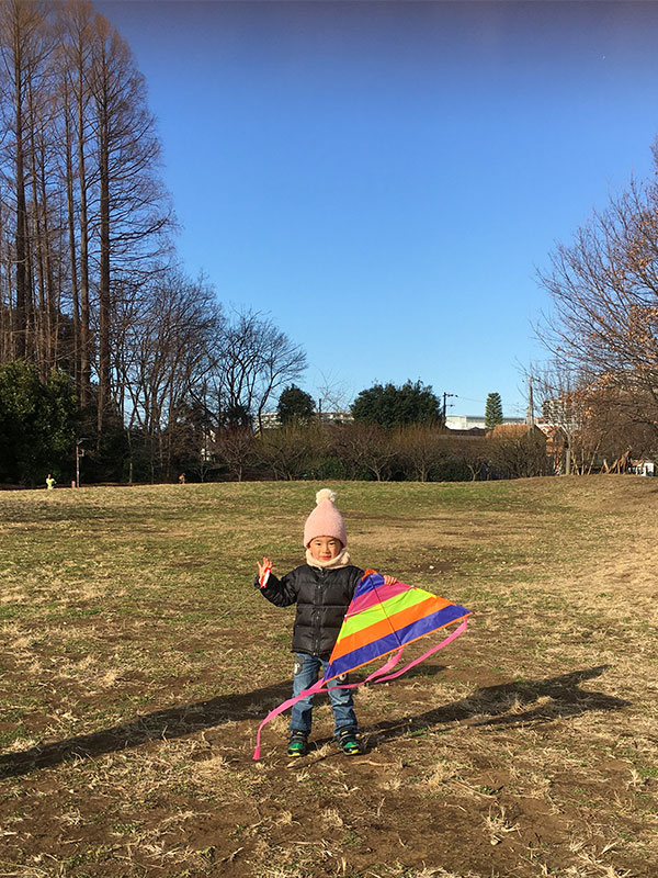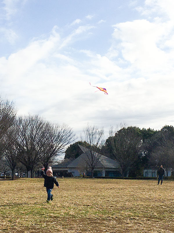 元旦の午前9時半過ぎ、西東京市緑町3丁目にある「いこいの森公園」。電柱がないので、お正月は凧揚げをする子ども達がいると聞いていた。今年はどうかしら。