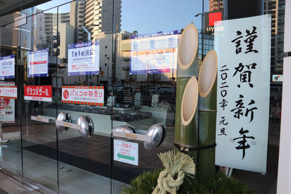 元旦のひばりヶ丘駅前をぶらっと歩いた。さすがにこの日は人も車も多くない。それでも南口の大型スーパー店前に「初売り」の看板が立ち、お客を呼んでいる(上)。同じ建物内の珈琲店も営業中。駅前広場に面したパチンコ店も繁盛している。門松を飾った商業施設は2日から営業だった(中)。