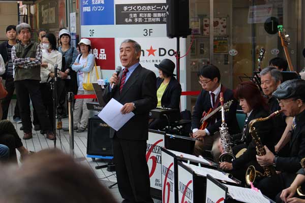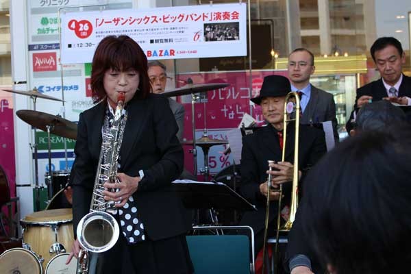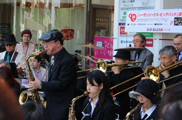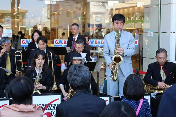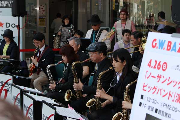 西東京市を中心に活動しているノーザンシックス・ビッグバンドの演奏会が[2015年]4月26日、西武池袋線ひばりヶ丘駅前のパルコひばりが丘店頭で開かれた。「ハロー・ドーリー!」から「Sing, Sing, Sing」まで予定された曲目に、ナット・キング・コールの歌で知られる「L-O-V-E」をアンコールに加えた全9曲が演奏された。晴天に恵まれた日曜日の午後。ビッグバンドの華やかなサウンドに誘われて大勢の買い物客らが集まり、曲が終わるたびに大きな拍手で演奏を楽しんでいた。