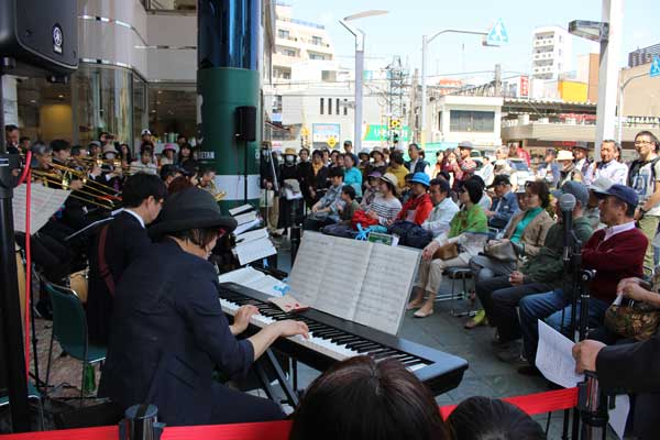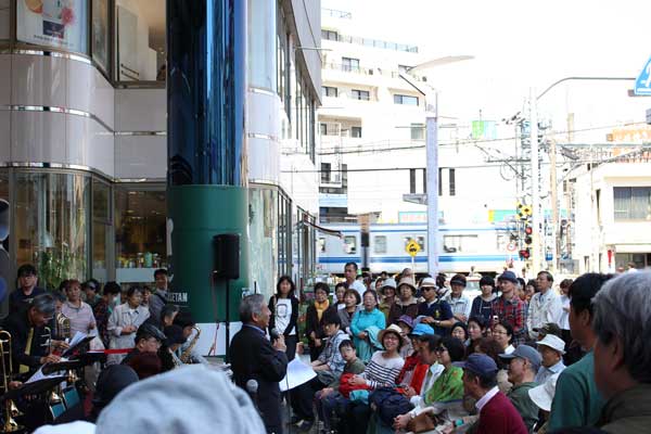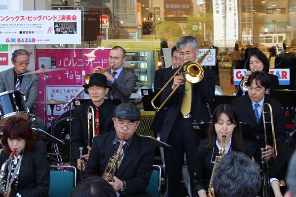 ビッグバンドの演奏華やかに ひばりヶ丘駅前のパルコ店頭で