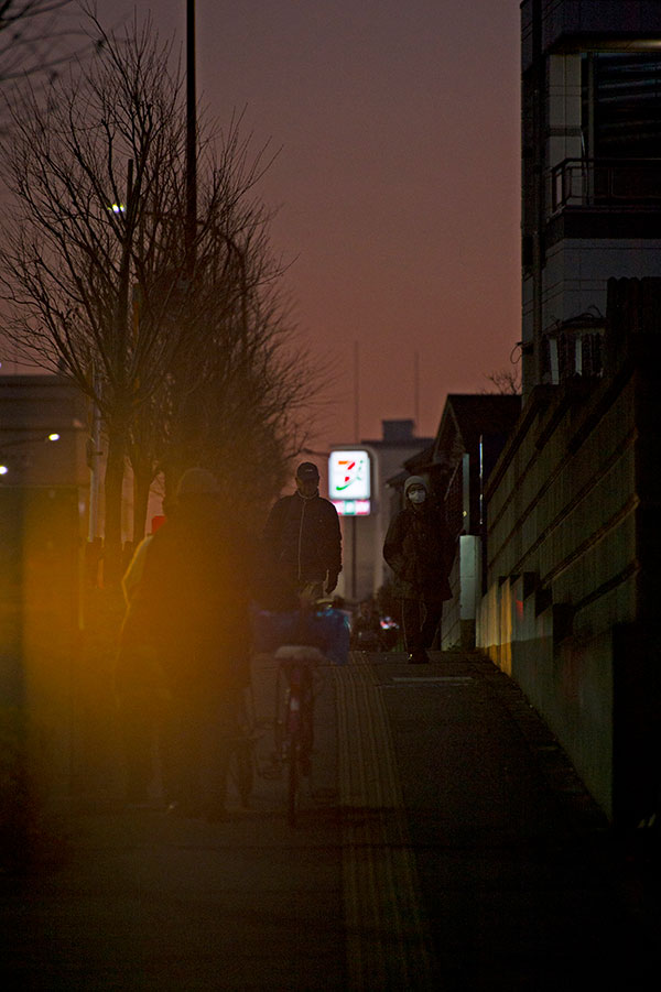 夕日が沈んだあたりの時間をうろうろする。通行人。