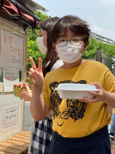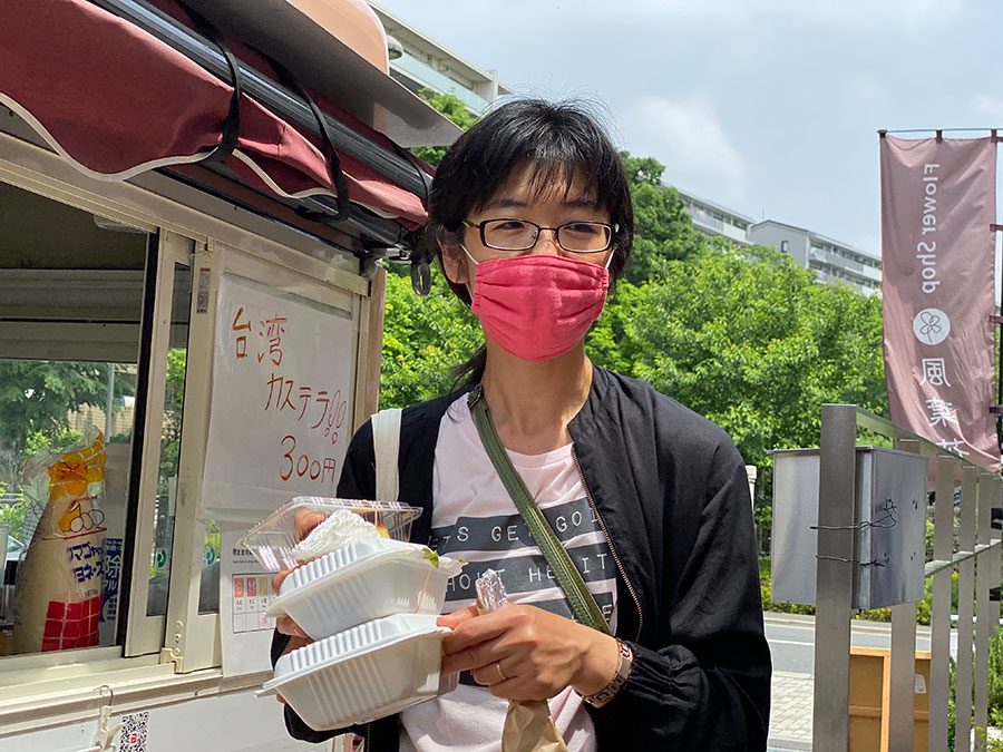 「予想より多くのお客さんが来てくれた。ひばりテラスでは何度かイベントで出店しているので、覚えていてくれたお客さんがいてうれしかった。小さかった子が大きくなっていて驚いた」と感想を話した。今の事情を尋ねると「イベントが中止になり、住宅街への出店が増えていている。密になることに気を遣うこともあるが、今日は大丈夫だったのでホッとしています」と苦労も語った。