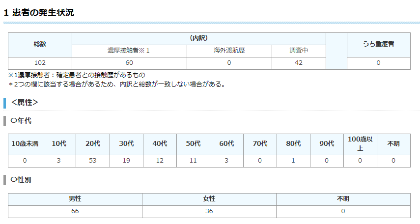 東京都は7月6日、新型コロナウイルスの感染者が102人と発表した。5日連続100人台となった。感染経路不明は42人。20代と30代で計72人、71%だった。死亡は変わらず325人、患者総数は6867人。新宿区は37人増えて851人と都内トップ。西東京市は1人増の59人になった。