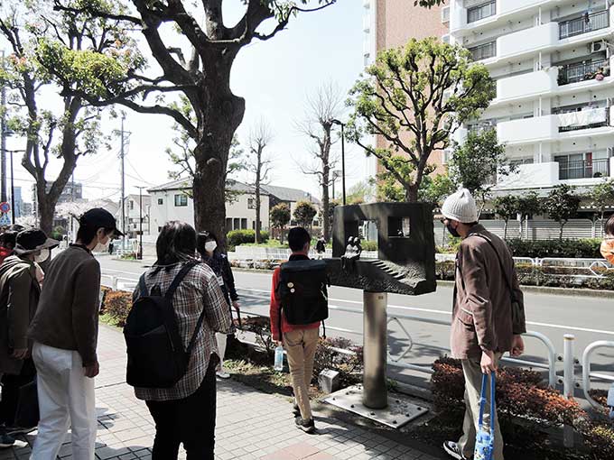 2021年3月27日、西東京市内の柳沢駅周辺でパブリックアートをみるイベント「街角アートみーる」を開きました。たくさんの人とおしゃべりしながらアートを鑑賞する活動を行う市民ボランティア「アートみーる」が案内役を務めました。
