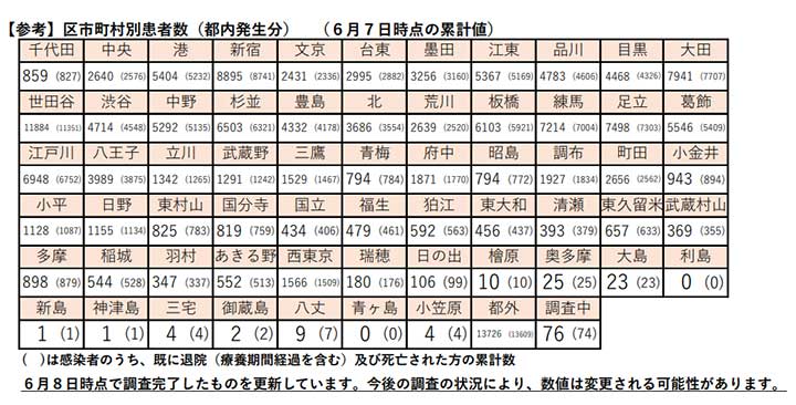 区市町村別の患者数は世田谷区1万1884人、新宿区8895人、大田区7941人など。多摩地区は八王子3989人、町田市2656人、調布市1927人、府中市1871人、西東京市1566人と続いている。